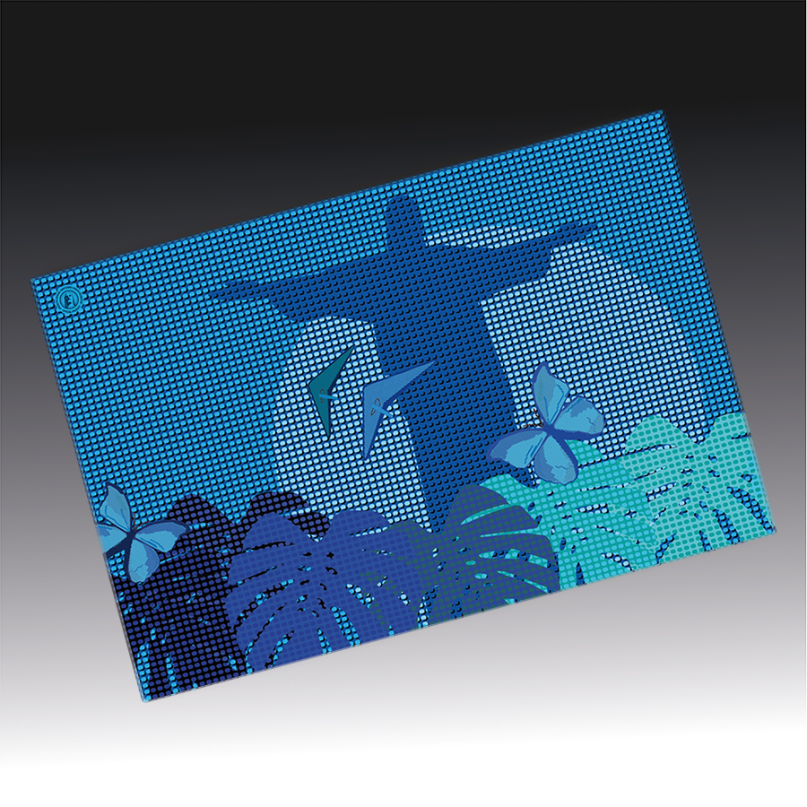 Cores: Impressão UV a 4/0 cores. Serigrafia no verso.