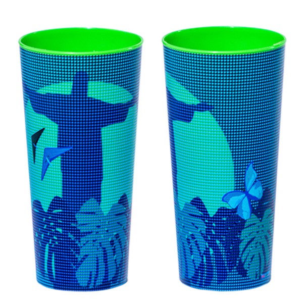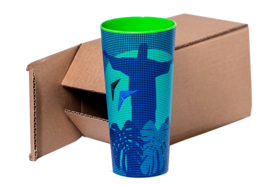 Formato: Copo Eco em PP com 510ml (16cm altura). Embalagem individual em caixa de papelão Kraft.